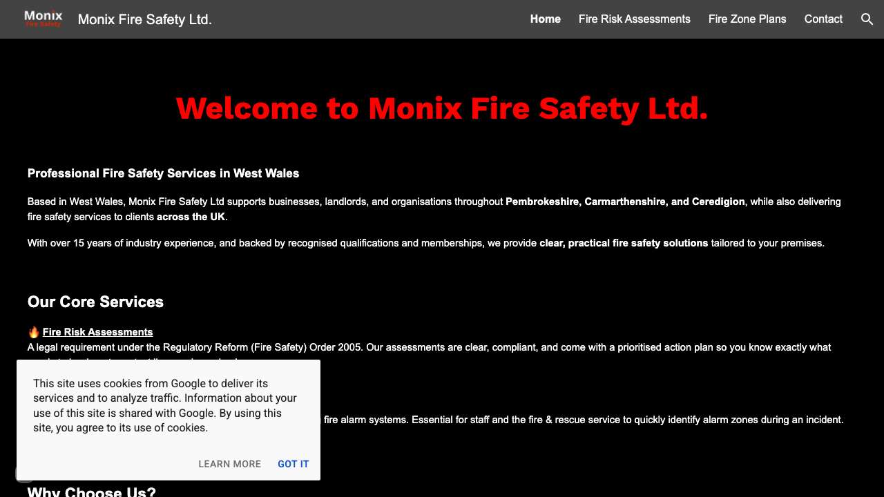 Providing essential fire safety services, Monix Fire Safety Ltd specialises in supporting businesses, landlords, and organisations throughout West Wales, including Pembrokeshire, Carmarthenshire, and Ceredigion. With over 15 years of industry experience, the company delivers practical fire safety solutions that adhere to the highest standards, ensuring that clients across the UK can operate with confidence and compliance. The core offerings of Monix Fire Safety Ltd include comprehensive Fire Risk Assessments, which are a legal requirement under the Regulatory Reform (Fire Safety) Order 2005. These assessments are thorough and result in a prioritized action plan, guiding clients on the necessary steps to protect lives and property. Additionally, the company provides Fire Alarm Zone Plans, producing accurate and compliant BS 5839-1 diagrams that facilitate rapid identification of alarm zones during emergencies for both staff and fire rescue services. Monix Fire Safety Ltd stands out due to its commitment to clear, practical advice that goes beyond mere compliance. The team consists of qualified professionals, including holders of the Level 4 Diploma in Fire Risk Assessment, and members of the Fire Protection Association (FPA) and the Institute of Fire Safety Managers (IFSM). This expertise ensures that clients receive tailored recommendations that are easy to implement and relevant to their specific environments. Understanding that fire safety is not just about meeting legal obligations, Monix Fire Safety Ltd prioritizes the protection of people, property, and livelihoods. Clients appreciate the ongoing support that follows assessments, reinforcing the importance of continuous improvement in fire safety practices. Through their dedicated approach, Monix Fire Safety Ltd aims to foster a culture of safety and preparedness within every organisation they serve.